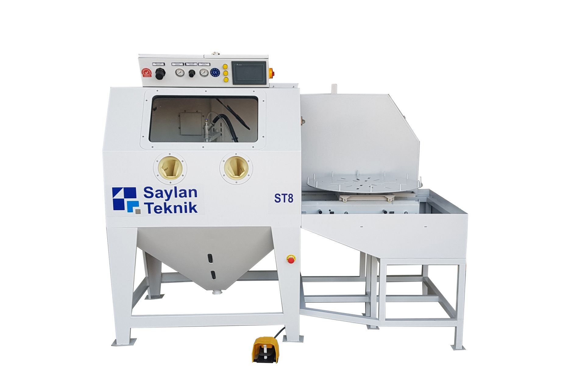 ST8 MANUAL WET BLASTING MACHINE W/ ROTARY TABLE AND RINSING BENCH